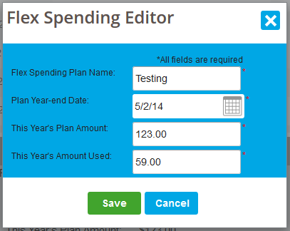 Clicking on the “Edit” button will launch the Flex Spending Editor, which allows them to add information specific to their plan, including year-end date, total plan amount, and amount used. This will help them to calculate how much they have left to spend that year.